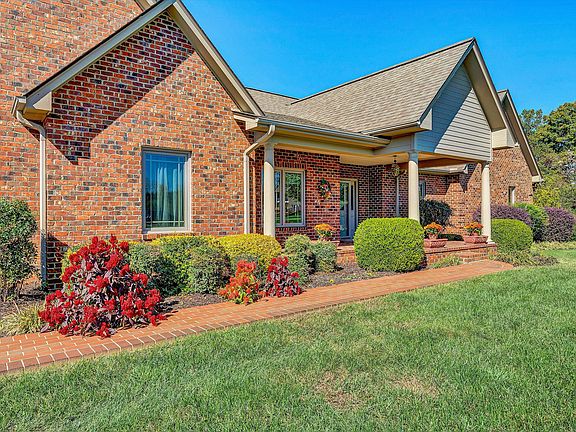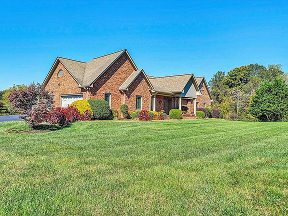 Experience the ease of one-level living in this beautifully designed brick ranch set on 3 private acres, perfectly situated between Roanoke, Rocky Mount, and Smith Mountain Lake. Built for comfort and efficiency, this home features geothermal heating and cooling, a tankless hot water system, and a 50-year architectural shingle roof. Inside, you'll find a thoughtfully designed layout with 36 inch doorways and custom maple kitchen cabinets crafted by Elegant Woodworks. The Seven Oaks hardscape enhances the outdoor living space, making it perfect for relaxing while taking in breathtaking views of Cahas Mountain. Enjoy incredible sunrises and sunsets right from your front porch or back patio. The main level offers spacious bedrooms and living areas, while the upper-level guest room or home offices provide flexibility for visitors or remote work. A full basement adds ample space for storage, recreation, or hobbies, and the 3-car garage on the main level is complemented by an additional 1-car garage belowideal for larger families or car enthusiasts.