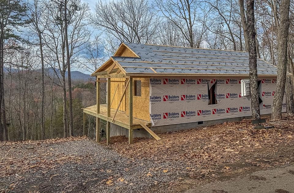 Discover the perfect opportunity to own a brand-new mountain getaway to be finished 2026, thoughtfully positioned to capture serene wooded surroundings and long-range ridge views. This charming cabin is under active construction and already showcases quality craftsmanship and a newly framed covered porch that invites peaceful mornings and sunset views. Once completed, this 2 bed 2 bath home will offer warm wood finishes, an open-concept living space, and the peaceful privacy of a forested setting. Its elevated setting provides natural privacy while keeping easy drive access all sitting on 65+/- serene acres. Close to local hiking trails, scenic overlooks, and mountain-town amenities like the Harrah's Cherokee Valley River Casino. Whether you're dreaming of a cozy full-time residence, a weekend retreat, or a high-demand short-term rental investment, this new-construction cabin provides the rare chance to create your perfect mountain escape. With progress already underway, now is the ideal moment to secure a brand-new home in a sought-after, tranquil setting. Reach out today for a showing!