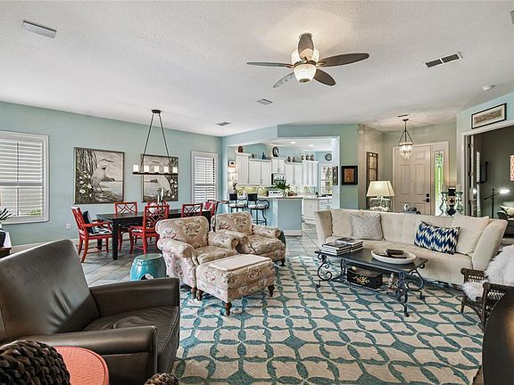 Experience breathtaking panoramic WATER VIEWS with a serene conservation backdrop from this stunning Boca Raton model, complete with a rare THREE CAR GARAGE and a Pebble Tec HEATED SALTWATER POOL with a relaxing SPA that gently spills over into the pool. NEW ROOF installed in 2021. NEW HVAC AND HYBRID HOT WATER HEATER installed in 2021. The home captures the best of both worlds—tranquil water views paired with the beauty of a natural preserve beyond—creating a picturesque setting you’ll love coming home to. Designed for comfort and everyday living, this home features two bedrooms plus a versatile DEN in an easy-flowing OPEN FLOOR PLAN. Rounded corners, 8-foot doors and PLANTATION SHUTTERS throughout adds charm, while the natural light throughout makes the space feel warm and welcoming. FRENCH DOORS invite you outside to your private oasis, blending indoor and outdoor living. The pool is equipped with convenient pop-up cleaners for easy maintenance and features a heater just three years old, ensuring year-round enjoyment. The kitchen showcases 42" staggered cabinets with convenient pull-out shelving, Zodiac QUARTZ countertops, and a sleek GLASS TILE backsplash. The cabinets are enhanced with both over- and under-cabinet lighting. A spacious pantry adds functionality, while extended cabinetry carries into the BAY WINDOW bump out creating a cozy nook—perfect for your morning coffee. Open to the dining area, this space makes it easy to cook, chat, and enjoy time with guests. The PRIMARY SUITE is a spacious retreat with ENGINEERED HARDWOOD flooring, serene water views, and a large WALK-IN closet with custom built-ins. A set of French doors leads directly to the pool area, making it easy to slip out for an early morning swim. The ENSUITE BATH includes raised vanities, DUAL SINKS, a FRAMELESS WALK-IN shower with BENCH, and upgraded lighting and mirrors. The large WALK-IN CLOSET with custom built-ins provides plenty of storage. A second bedroom and adjacent full bath add comfort and convenience for guests or family. The den, with its double doors and custom built-ins, is perfect as a home office, library, or craft room. The laundry room features a UTILITY SINK , UPPER cabinets for storage, and includes the washer and dryer. The THREE-CAR garage offers plenty of space, complete with a storage closet and PULL-DOWN ATTIC stairs for easy access. Located in the award-winning Solivita community, this home offers resort-style living with an active lifestyle at every turn. From golf and tennis to social clubs and community events, there’s something for everyone to enjoy!! *See the MATTER PORT 3D VIDEO on Tour Link 1.HOA: - maintains the LANDSCAPING & IRRIGATION systems in the common areas as well as at individual homesites - maintains the roads throughout the community - PROVIDES SECURITY with gate guards and mobile patrols including the Polk County Sheriff - allows AUTOMATED GATE ACCESS for residents via license plate readers - provides residents with Fiber Optic Internet & TV service.***Poinciana Lakes Plaza is a MAJOR NEW SHOPPING CENTER that opened directly across from the Solivita Main Gate in Summer of 2024. It features Sprouts Grocery, TJ MAXX, Ross, Burlington, Rack Room Shoes, 5 Below, Ulta, Outback, First Watch, 5 Guys, Urgent Care, Dentist, TD Bank, Petco & Hair Cuttery PLUS MORE TO COME.***