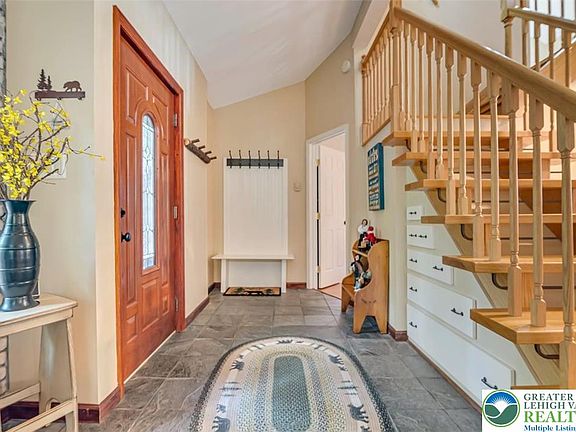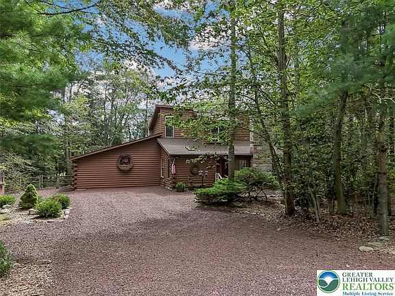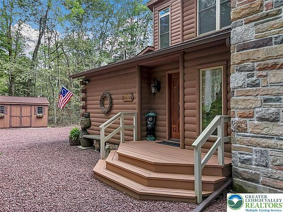 LAKEFRONT! LAKEFRONT! LAKEFRONT! Welcome to a truly special lakefront retreat where luxury meets tranquility. This beautifully appointed 4-bedroom, 3 full bath home offers mountain living in a warm, inviting setting—perfect as an upscale getaway or a fabulous Short Term Rental. Step inside to a sun-drenched interior with soaring ceilings, rich hardwood, Luxury Vinyl floors, & lake views from nearly every room. The kitchen is always the heart of the home & this one doesn't disappoint, featuring stainless appliances, quartz countertop & custom cherry cabinets. This sociable area seamlessly flows into the dining area with wood stove, living room with gas fireplace & the "Lake Room", a cozy family/game room. The 1st floor features 2 bedrooms with 2 full baths & laundry. The 2nd floor features 2 bedrooms and full bath providing comfort & convenience for family & guests alike. Outdoors, unwind on the expansive deck, host dinner under the stars, or launch a kayak from your private shoreline. Enjoy the amenities of Short Term Rental friendly Camelot Forest Conservation, including 2 lakes, private beach, tennis courts & nature trails. Every detail of this home has been thoughtfully designed to offer comfort & effortless lakefront living. Minutes to Pocono Raceway, Lake Harmony for golf, dining and entertainment, and when winter arrives, you're just minutes away from Jack Frost/Big Boulder Ski Resort, making this a true four season retreat in the heart of the Pocono Mountains.