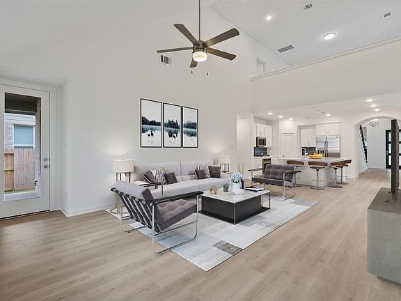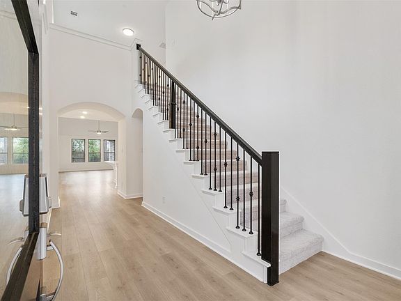 This stunning two-story all-brick home offers timeless curb appeal and a sought-after floor plan designed for both style and function. Inside, soaring ceilings and a wide entry make a lasting impression. Just off the entry, a private home office creates a quiet workspace, while a spacious storage closet is tucked beneath the staircase. The oversized kitchen island doubles as a gathering spot with generous seating. The gourmet kitchen boasts white cabinetry, sleek countertops, matching backsplash, built-in stainless steel appliances, and abundant storage. The dining and family rooms flow seamlessly from the kitchen, creating an open space ideal for both everyday living and entertaining. At the back of the home, the primary suite overlooks the expansive outdoor living area, offering a private retreat with serene views. Situated in a phenomenal neighborhood with endless amenities. Schedule your private showing today