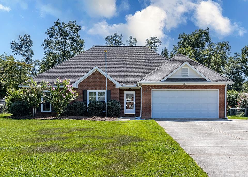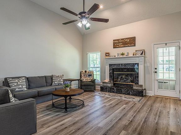 Check out this newly updated home in Lee County! This 1869 sqft home features 3 bedrooms + office/bonus room and 2 fully updated bathrooms. Walking in to the front door you will find a large great room with tall ceilings and a gas log fire place with updated laminate flooring throughout. The newly updated kitchen includes tons of cabinets, tiled backsplash and granite counter tops throughout with stainless steel appliances. The dinning area includes tons of windows to enjoy the back yard scenery. The spacious primary bedroom includes his and hers walk in closets. The primary bathroom has been fully updated with a huge tiled walk-in shower and granite counter top double vanity sinks. The office/bonus room is perfect for working remotely. The other two bedrooms include nice walk-in closets and a Jack-n-Jill bath that has been updated with granite counter tops and tiled flooring. The fenced in back yard includes a nice size back patio perfect for entertainment and a storage shed. Some other features include a large laundry room with tons of cabinet space, double garage, and low maintenance curb appeal! This home beautiful home will not last long! Call today to schedule a showing!