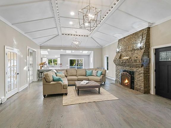 Beautifully updated, expanded ranch with 4 bedrooms and 4 fully renovated full bathrooms in coveted location! Enjoy open floor plan living and newer hardwood floors! Home features spacious and bright living room with fireplace, formal dining room, and family room. Renovated eat-in-kitchen with updated appliances features glass sliders to private deck and lovely backyard - perfect for lounging and entertaining! Home also has a primary bedroom suite with a full bathroom, cozy sitting area and walk-in closet. Space is a non-issue, as two additional bedrooms boast a sitting/study room and two full bathrooms. Enjoy the luxury of a fully finished basement with family room, wet bar, bedroom, and full bathroom. This must-see home has two car attached garage, central air, and three zone heating. Conveniently located to NYC transportation, schools, shopping and houses of worship. Landscaping and snow removal are the responsibility of the tenant.