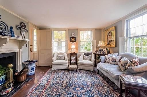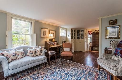 VILLAGE ANTIQUE COTTAGE with ONE CAR GARAGE/CARRIAGE BARN. Wide pine floors, three (3) Fireplaces, central AC. Stone's throw to MBTA Boston Train, Crosby's Grocery Store, 15 Walnut, The Black Cow, Post Office and other services. Sunny patio off Family room.....great value!