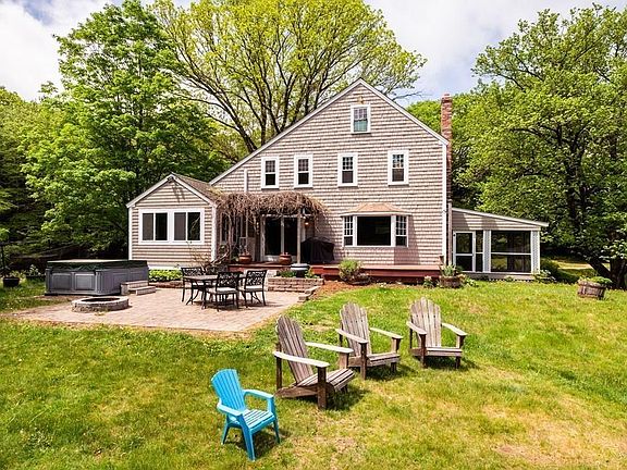Drink in the open air - Somewhere you can breathe - Inviting and Comfortable Shingled Saltbox home with lots of charm and character. An Idyllic Setting awaits in this convenient Boxford location abutting trails and minutes from Route 95. Charm abounds in the oversized dining room with wood burning fireplace along with a rich, gorgeous, raised-panel wall, built in shelves, and wainscoting. This property has the perfect bones to increase your investment: Owner has an architectural floor plan on site to add on a mudroom, family room, and recreation room with two car garage. Update the existing bathrooms using your own palette and vision. Recent updates include a new oil tank, five ductless heating and cooling units, and 14 window replacements. Extend your living areas outside to the screened in porch, hot tub/deck, patio and rolling lawn, where you will be mesmerized by the view. Truly a place you can exhale.