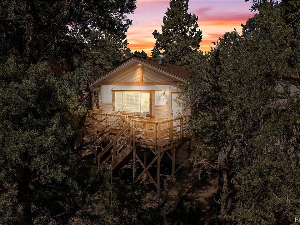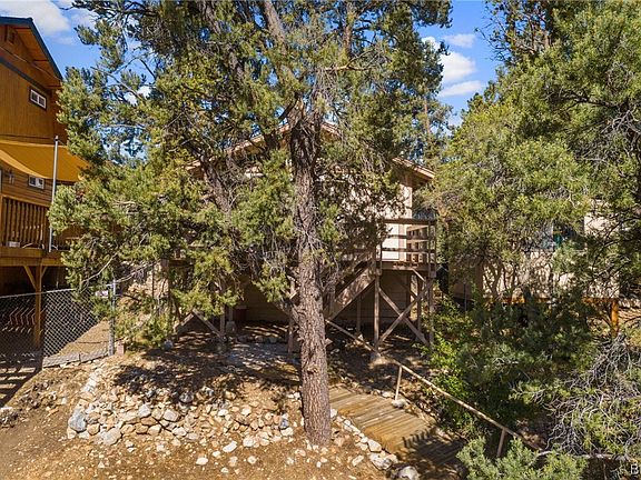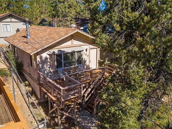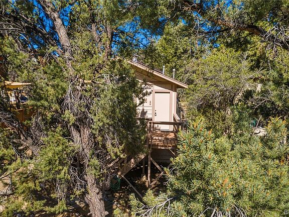 Super cute cabin nestled in the woods. Situated at the top of the lot, high above the street. This cabin is so clean. Nice open living room/kitchen greatroom with a wood burning stove and wood ceilings. Lots of windows keep it bright. Updated kitchen is perfect for the mountain location. Vinyl double pane windows. Carpet and tile floors. Sunny front porch to enjoy the mountain air. Don't miss out on this great buy on the quiet side of town.