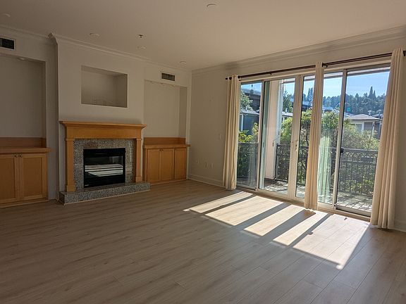 This 3 bedroom, 2 bathroom, end unit has tall ceilings, gets great light, and has LVP and carpeted floors throughout. Laundry machines in unit. Central AC, fireplace, dining room, entry way, 3 balconies, and 2 reserved parking spaces (1 undercover and 1 in surface lot).