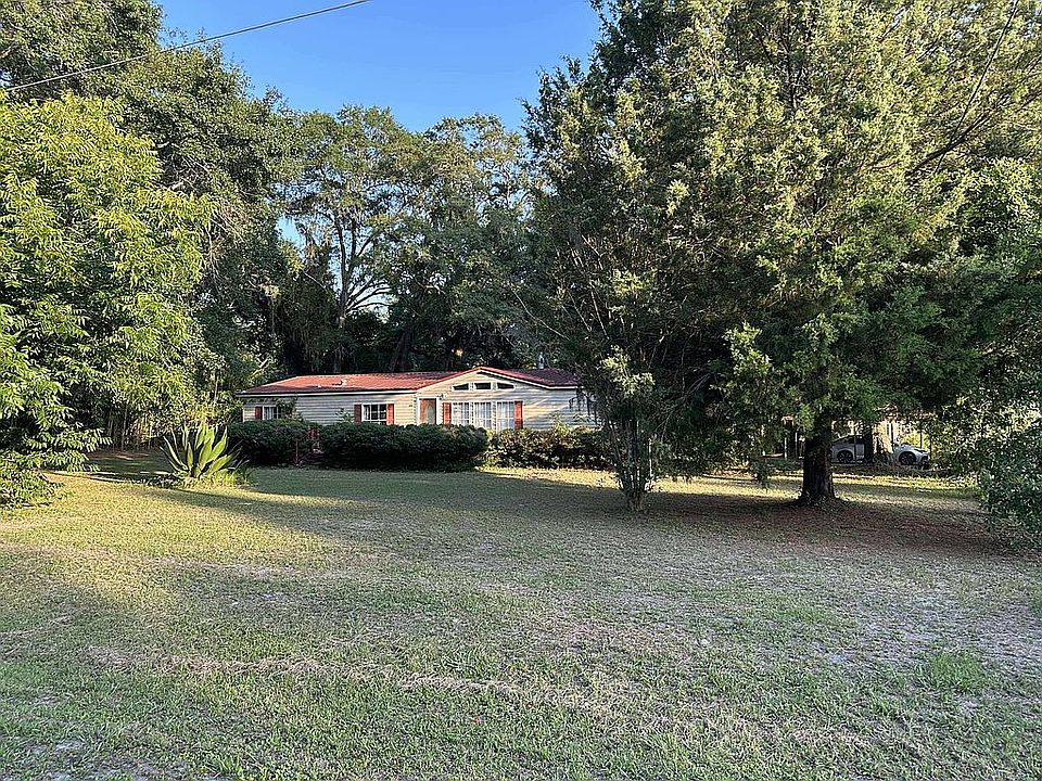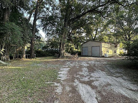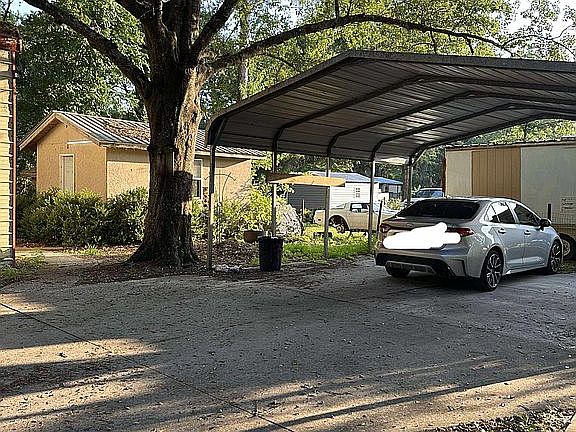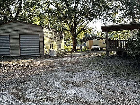 There is a 2 bay garage with a nice sized shed behind it that has a window unit AC and a carport that will fit 2 cars under it, the back porch is covered by a roof, and the front porch has been taken down but still has the room to rebuild one if you’d prefer.