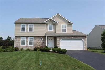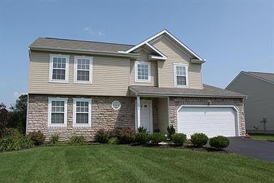 Spotless 4 Bedroom, 2.5 Bath Pataskala two story in move in condition! Spacious Rooms throughout and on over half an acre and huge back yard for kids to play! Backs to horse farm that provides idyllic landscape for view! Attractive curb appeal with Stone and Vinyl exterior! The two story Foyer opens up to a dramatic view of the open staircase. The Kitchen has an island and is fully applianced, and a large dinette for informal meals. The Kitchen is open to the Family room with gas fireplace! A Living Room and Dining Room provide space for formal entertaining and holiday meals and gatherings. The large Master Suite has two big walk-in closets a soaking tub and shower! Bedrooms 2-4 are all big rooms for kids or guests. The full basement could be finished or provides a lot of storage