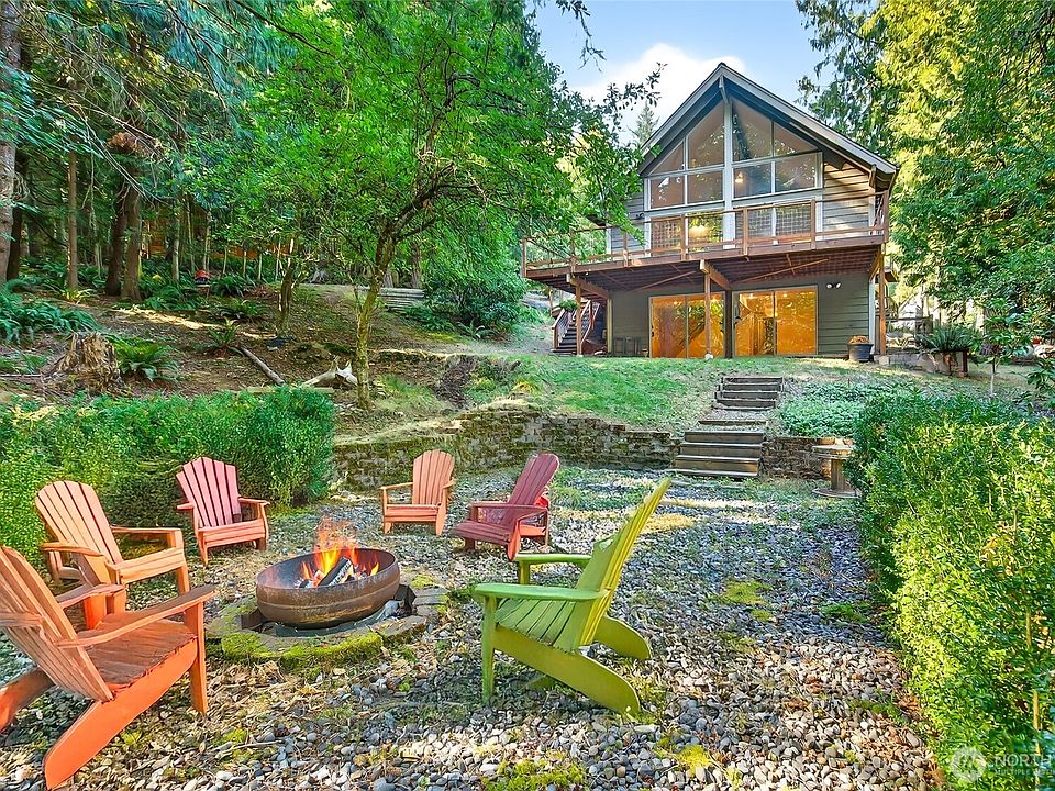 Welcome to tranquility. Windows galore flood this grand A frame with ample light. Settle into your brand new, oversized deck or bring your friends together for a cozy fire in the woods. Situated on the uphill side of a double lot, privacy and comfort abound. A FLAT, pull through driveway leads right to the front door! 2400 sq ft allows for spacious living w/ 4 BRs (TWO primary!), 2.5 BA, a renovated daylight basement (MIL potential), walk in closet, 2 living rooms, and so much more! You've got to see it to believe it! For bikers, a dirt jump course in the side yard is the cherry on top.