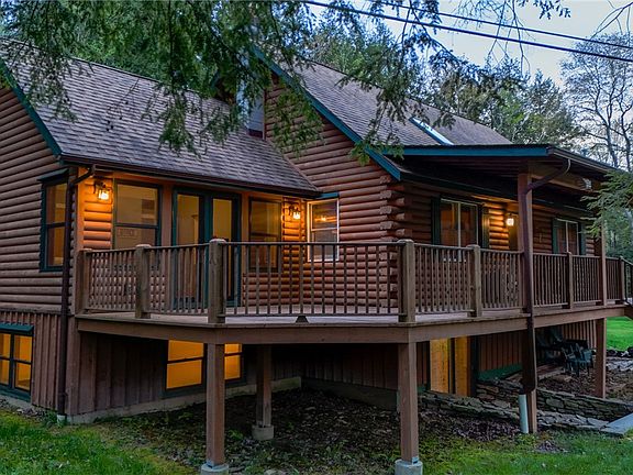 LAKEFRONT CABIN ON SEAN LAKE – A PRIVATE RETREAT ON 5+ ACRES Escape to your own Beaver Mountain lake home, perfectly situated on the pristine, spring-fed waters of Sean Lake. Nestled on over 5 acres of serene woodlands, this property offers the ultimate getaway with a large lawn surrounded by evergreens and mixed forests. Built in 1988 and thoughtfully updated in 2015, this charming cabin features a new first-floor primary suite with soaring cathedral ceilings and exposed beams. The spa-like ensuite bath includes an oversized glass shower for the perfect retreat. The gourmet kitchen boasts custom cabinetry, Caesarstone quartz countertops, hand made backsplash tiling and premium appliances, seamlessly flowing into the open-concept living and dining areas adorned with stunning wormy maple flooring. Stay cozy year-round with high-efficiency mini-splits and a Jotul wood stove. The finished basement offers a guest bedroom/extra room, half bath, laundry, and bonus space for entertainment. Outdoor living is a dream with a large covered porch, a screened-in porch, and a private dock with a rowboat for lake adventures. The oversized two-car garage includes a workshop and an electric vehicle charging station. Conveniently located just minutes from Callicoon, Roscoe, and the Delaware & Beaverkill Rivers. Don’t miss this rare lakefront opportunity! Schedule your private showing today.