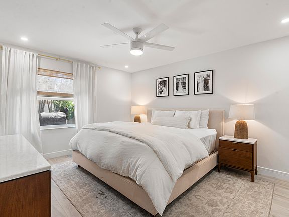 Indulge in Florida living in this meticulously renovated 2 bedroom, 2 bathroom home with an office/den, ideally situated in Jupiter's coveted Indian Creek neighborhood. Step inside and be captivated by the light-filled ambiance created by soaring vaulted ceilings and a neutral color palette. The impressive kitchen, boasting two-toned cabinetry for ample storage and premium Bosch appliances, is perfect for entertaining. Unwind in the serene primary bedroom, complete with a luxurious walk-in closet, your own private haven. The additional den offers a perfect space for productivity or a versatile room for hobbies and guests. The impressive features extend beyond the home's stylish interior. Enjoy peace of mind with fully impact-rated windows and doors, a low-maintenance turfed backyard and ample room for boat storage - the ideal elements for a carefree Florida lifestyle.