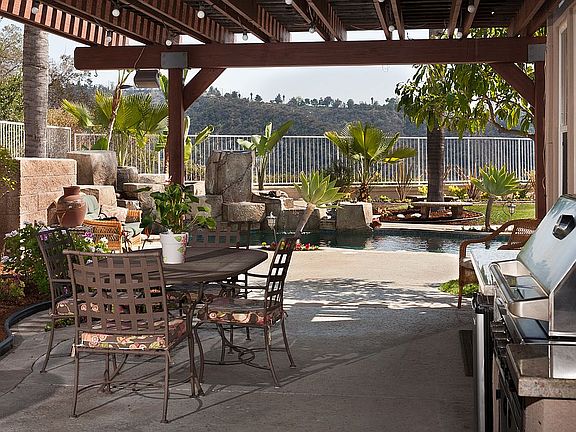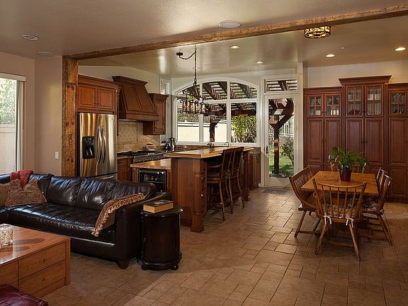 The current owners love cooking gourmet meals and sharing them with lots of friends and family. They raised an active family- the huge flat yard with covered patio, pool, BBQ center and hot tub grotto hosted endless parties. They indulged in a love of fine details- fine cherry cabinetry, onyx tile and hand hewn beams. Nestled in the bend of a quiet street in Rancho San Rafael, the home opens from a modest exterior to a glorious double height living room and astonishing, completely reimagined, kitchen. The yard is one of the largest in the development and the canyon views are expansive and serene. There is a bedroom, office, and remodeled bath downstairs, while a luxurious master suite and two additional bedrooms as well as a guest suite are upstairs. Please ask for our extensive list of features and upgrades. This home is as satisfying as sharing a fine Cabernet at sunset with a loved one.