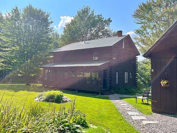An Outdoor Enthusiasts Dream! Cozy, charming Log home with heated, 2 car detached garage situated on a 10.2 acre parcel in a beautiful Lake Elmore neighborhood. This property is surrounded by hundreds of acres of protected land for hiking, biking, fishing and outdoor recreation. Perfect property for homesteading, ski cabin, investment property or weekend getaway. Ski in/ski out access to manicured, Nordic ski trails. Nearby access to the VAST snowmobile trails in addition to the scenic on site trails. Plenty of room for your Snowmobile, Boat, ATV or RV! Enjoy a glass of wine on the enclosed front porch or cozy up to the Hearthstone wood stove for a relaxing evening in. Finished basement is perfect for game/ rec room, fitness & more! There is a pond site, but for swimming, boating and fishing; it's just minutes to Lake Elmore . This home has many updates and is ready for your finishing touches including; New plumbing & Half bath 2023 Electrical Updates 2022 New Kitchen/ Appliances 2022 Fully waterproofed basement, sump pump with double battery backup and lifetime warranty 2022 Hearthstone wood stove 2019 Energy Efficient Propane Furnace 2018 ** High speed Fiber internet On Site!** Just 5 mins to Lake Elmore and Elmore State Park, and a short drive to restaurants and shopping, 30 mins to Stowe or Montpelier. *Showing By Appt Only*