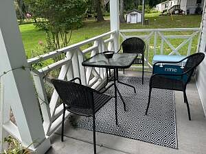 Full length front porchWarm inviting atmosphereCozy comfortCeiling fan