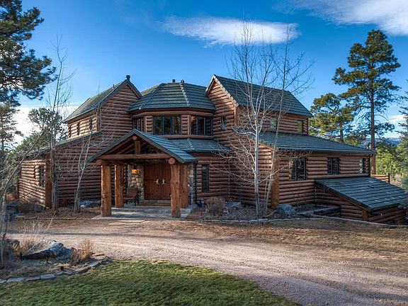Luxury Log Home for those who appreciate Colorado's natural setting and beauty. Located in the most serene setting amongst a Pine forest with mountain views and log/stone craftsmanship constructed with historic, reclaimed materials. This house amazes even engineers with its incredible construction and endless attention to detail. This could not be rebuilt or replaced for $1.500.000! 50 year tile roof, radiant floor heating, wrap around deck, built in stone firepit, main floor master suite with private deck. Not only could you not rebuild this at this price but the actual lot is equally as irreplaceable complete with views of the mountains and ceiling to floor windows to view them from every room in the house! Make an offer today................