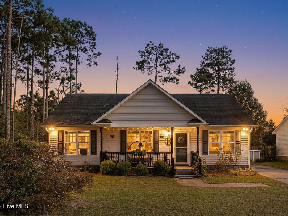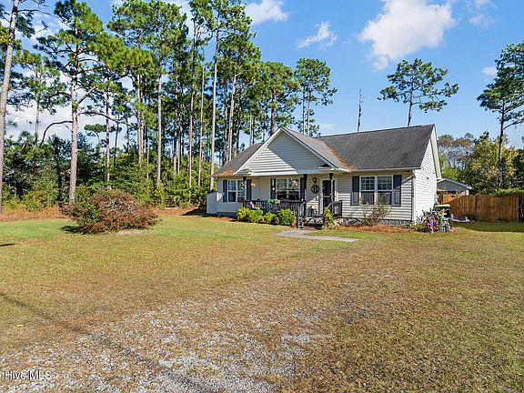 Rare spacious 4 bedroom / 2 bath home with no HOA in Boiling Spring Lakes! This Alexander II plan by Blake Home Builders is ready for new owners. The 1431 sqft home even includes a 144 sqft conditioned outbuilding / office / man-cave / she-shed with power double doors and LVP flooring for added space & convenience not included in the square footage! Enter the home through the covered rocking chair front porch into the living room with vaulted cathedral ceiling. LVP flooring runs throughout the living spaces of the open floor plan home which is decorated in coastal colors with bold accents. The eat in chef's kitchen includes tile flooring, granite countertops, stainless steel appliances, decorative lighting, bar stool peninsula, and plenty of white cabinetry to help aid home cooked meals or entertaining. The primary bedroom comes complete with ensuite bathroom and walk in closet. 3 additional bedrooms are separated from the owners suite and are serviced by a full hall bath. The laundry room is conveniently located off the kitchen. Outside you'll discover a fully fenced backyard with an enormous patio and awning perfect for entertaining or play. Don't let the opportunity to make your own memories in this home pass you by!