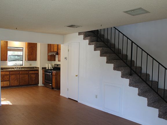 freshly painted, new carpet upstairs bedrooms, LVT downstairs living room, kitchen, dining area, bathroom floors. Central AC and heat, large private patio area off bedroom, large units, carport, laundry room in carport area. town house style 4plex, downstairs