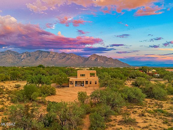 Welcome to your dream home in the exclusive La Cholla Airpark, where luxury meets aviation lifestyle in the heart of Oro Valley, Arizona with easy access to shopping, high end dining, and outdoor recreation. This is a rare opportunity to own this stunning custom-built move-in ready residence, situated on a pristine and ultra-private 8.9-acre lot, features 1,661 SF, 3BD, 2BTH, and 2-car covered garage with stunning views and sprawling lush desert in all directions. With a custom chandelier, coffered ceilings, a striking 3-color paint scheme, solid core doors, and canned lighting, the home is perfectly designed for both relaxation and entertainment. The kitchen provides a perfect blend for hosting or everyday indulgence with dual electric/gas ovens, a large gas cooktop, self-closing cabinetry, and a juice bar. Unwind in the upgraded bathrooms featuring premium Koehler toilets, a 2-person jacuzzi tub, and a downstairs 2-person tiled shower. Dual sliding doors open to a spacious patio with ceiling fans, colored concrete, and a flumeless gas fireplace. A gas BBQ and pre-installed gas pipe for a future pizza oven elevate the outdoor living space. Stay comfortable with a new, high-SEER A/C system featuring remotely controlled dual thermostats. Adjacent to the home is a professionally designed and compacted dirt pad, where you can build your dream hanger and taxi your plane from your home to the private airstrip, where a 4500' long paved and lighted runway awaits your departure. Long-term/Short-term Airplane rental space available on ramp. Equestrian property that allows horses with plenty of space to build your own barn and stalls. Whether you're an aviator or simply seeking a one-of-a-kind desert retreat, this home delivers unmatched quality and style. Schedule a private tour of this extraordinary property and experience the La Cholla Airpark lifestyle for yourself!