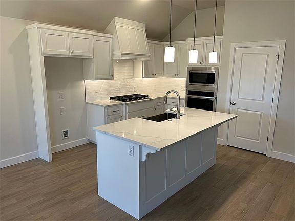 This beautiful home has lots of wow factors! As you enter into the home you will love the barrel ceiling leading from the entry to the living room. The living room is spacious with wood tile running throughout. The kitchen is loaded with custom cabinets, a large island, thick quartz tops, farm sink, under cabinet lighting, vented decorative hood, stainless steel Samsung built-in appliances and more. The primary bedroom is huge and enters into a large primary bathroom with soaker tub, tiled doorless shower, two sink vanity and large closet with seasonal storage. Both spare bedrooms are roomy as well. Fantastic covered back patio. Located on a large corner homesite! The neighborhood pool and clubhouse with fitness center and gathering hall and playground are close by for easy convenience!