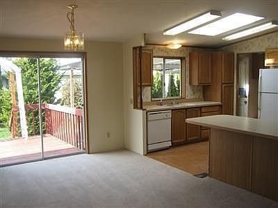 Come & see this Cozy 3 bedroom, 1 3/4 bath home in Popular Hollyhills. Freshly painted inside, new laminate floors in Kitchen, laundry area & Master Bath. Nice open Kitchen with breakfast bar, open to the Dining Room & Living Room area. Enjoy the freshly sod yard, New deck, porches & skirting. Hollyhills is an All Age Community with clubhouse, playground, tennis court & RV parking. Northshore School Dist. Close to shopping & freeways.