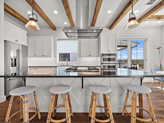 - Beamed Ceilings, Breakfast Bar, Ceiling Fan(s), Chandelier, Eat-in Kitchen, Exhaust Fan, Granite Counters, Kitchen Island, Multiple Living Areas, Open Floorplan, Pantry, Primary Bedroom on Main, Recessed Lighting, Stackable W/D Connections, Storage