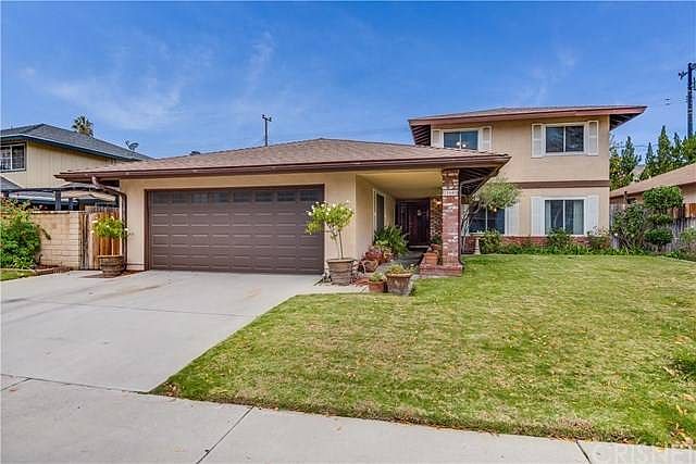 Welcome to 19601 Four Oaks St! Peacefully situated on a tree lined street, this home is perfect for the modern family looking for that Next Gen set up featuring TWO Master Bedrooms. Master bedrooms with attached baths on each level, and an additional bed upstairs plus a fourth bedroom, an office and a third full bath down. There is ample room for the buyer that needs options and space. Large formal living room with formal dining space and a chef's kitchen that opens to the family room. Tastefully updated with hardwood and travertine tile floors, crown molding, granite counterops in the kitchen with stone back splash, rod iron railed stair case, custom mantle over the living room fireplace, and custom builtins in the family room. Energy efficient updates include a newer a/c with dual zones for each level, dual pane windows, and a newer roof. The low maintenance rear yard is a peaceful retreat with lush landscaping, privacy and a hardcovered patio. Perfect location right down the street from Cedarcreek Elementary, Sierra Vista Junior High, AND Canyon Country High Schools. So much to enjoy here in your new home, come and see for yourself!