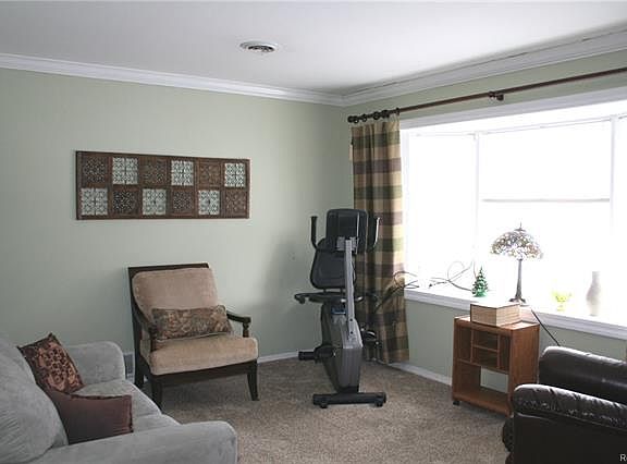 Nice 3 bedroom Ranch style home on corner lot. Living room has crown molding & bay window.. Spacious kitchen includes stainless steel sink w/disposal, built-in dishwasher, gas stove, refrigerator, ceiling fan, crown molding & recessed lighting. Large family room features fireplace w/gas logs, brick wall & face, slate hearth, crown molding and doorwall to cement patio. All bedrooms have carpet & ceiling fan. Updated bathroom. First floor laundry room includes washer/dryer. Raised panel interior doors throughout. Newer roof w/dimensional shingles. Furnace & A/C 2006. 2 car detached garage w/opener. Fenced backyard w/shed.