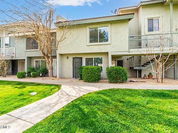Welcome home to this charming poolside unit. Immaculately cared for, clean and freshly painted with 3 bedrooms and 2.5 baths. Lounge in the spacious living area and enjoy the open kitchen featuring sleek new granite countertops, stainless appliances and a breakfast bar for casual dining. Upstairs you'll find 3 spacious bedrooms, new flooring throughout and a balcony. Enjoy the beautiful mountain views from the primary bedroom and balcony. Added bonuses are the inside laundry, private back patio, new windows, glass slider, dishwater, washer/dryer and water heaters. Community amenities include pools, basketball court, ample guest parking and open green grassy common areas. Location is hard to beat! Conveniently situated near the 101 and 51 freeways, with easy access to Phoenix, Scottsdale and the West Valley.