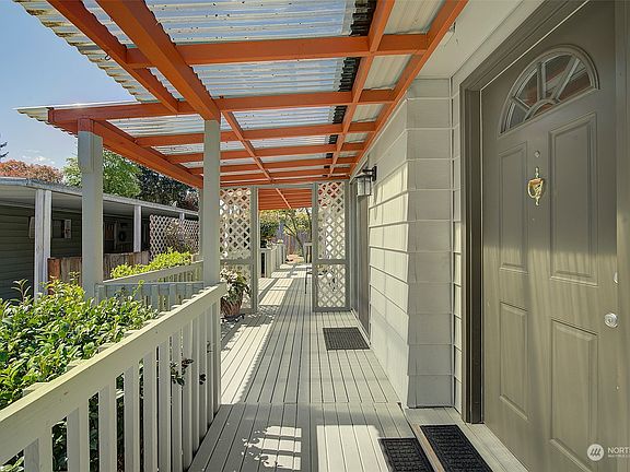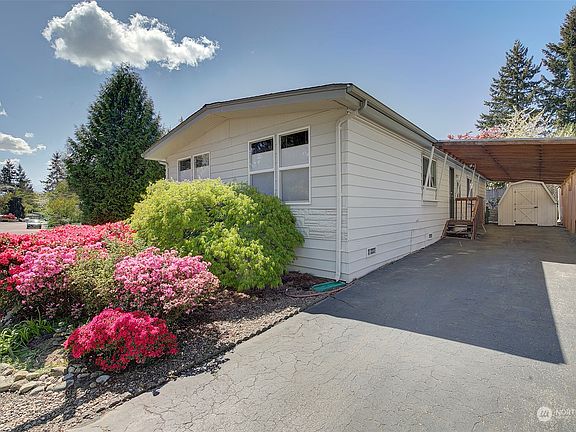 Wonderful opportunity in sought after Holly Hills - a quiet community in the Northshore SD where you own your own land. Light & bright lvg & dining rooms w/ vaulted ceilings, newer kitchen w/ stainless appliances & quartz countertops. Den/bonus rm w/ WB stove. Primary bdrm has spacious walk in-closet & partially updated primary bath featuring walk-in shower. Fully updated main bath & oversized utility room with lot of storage! Enjoy the outdoors year-round w/ partially covered private deck, beautifully landscaped rear yard w/ patio & garden shed. 2 car tandem carport! Minutes to I-405, downtown Bothell & UW Bothell. Community clubhouse and playground. Updated vinyl windows, heat pump w/ AC. 8X10 yard shed.