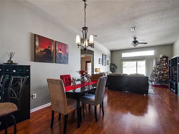 PRICE CORRECTION!! Located in the desirable GATED community of OAKSTEAD, this family friendly floorplan offers 4 good sized Bedrooms, a huge Great Room, a spacious Master Suite and an EAT IN KITCHEN with Volume Ceilings throughout! This SPLIT OPEN layout maximizes your living space! Recent UPGRADES includes a NEW A/C 2016, completely FENCED large back yard, laminate in the Great Room and new easy glide SLIDERS! Upgraded appliances and carpet in the bedrooms complete this package! This sweet home is literally a one minute walk to the CLUBHOUSE which offers year round activities, a lap pool, a kiddie pool, a covered Playground, Tennis Courts, Basketball, a Fitness Room and a 3 mile walking/biking trail. Also walking distance to all 3 schools!Convenient to shopping, restaurants and major thoroughfares. Tax amount shown already includes the CDD fee.