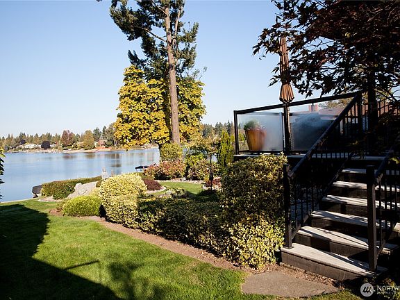 Experience the spectacular waterfront view of Angle Lake & Mount Rainier from this NW custom contemporary home. Expertly designed to seamlessly blend the gourmet kitchen, dining room & living room into one great space. Completely remodeled with exceptional high-quality materials. Spacious kitchen with quartz counters & Viking appliances. Captivating view from the master bedroom with fireplace & custom walk-in closet. Landscaped yard, private dock. Includes separate studio apt/ MIL/office with 3/4 bath & kitchenette over 3 car garage. See attached document with detail of upgrades and features.