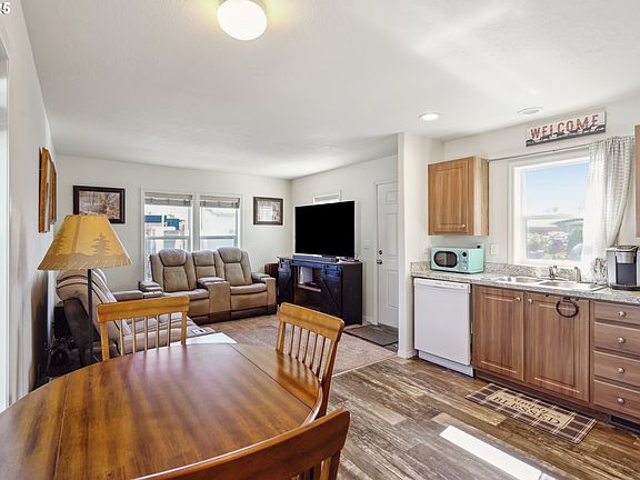 Welcome to Two Rivers Co-op, a friendly, resident-owned 55+ community! This move-in ready 2022 manufactured home features a new energy-efficient heat pump and A/C (2024) with Smart thermostat, a new refrigerator with water and ice dispenser (2024), plus updated screen doors (2024) and blinds (2023) throughout.Inside, the open floor plan offers an abundance of natural light, 2 bedrooms/1 bath, a dining nook, a fully equipped kitchen with appliances, laundry hookups for convenience, and extra storage in the outdoor shed.The community offers fantastic amenities including a swimming pool and a newly renovated, air-conditioned clubhouse with a pool table, shuffleboard, and game tables. Residents enjoy a welcoming atmosphere with weekly coffee hangouts and social gatherings—it's a great place to connect and feel at home.Recent improvements include newly paved roads and an upgraded city water system. Nature lovers will appreciate nearby parks, walking paths, and a bike trail leading to the Clackamas River. You're also just minutes from shopping, dining, public transit and easy access to Hwy 205. Space rent is $630/month and includes water, sewer, and garbage. Come experience this warm and active community—you’re going to love it!