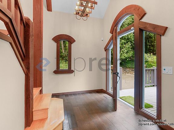 Nestled in the serene surroundings of Sammamish, WA, this charming home at 19606 SE 24th Way offers a perfect blend of rustic charm and modern elegance. As you enter, you are greeted by a spacious living area adorned with exposed wooden beams and large arched windows that invite abundant natural light, creating a warm and inviting atmosphere. The open floor plan seamlessly connects the living area to a well-appointed kitchen featuring sleek countertops, contemporary appliances, and ample cabinetry, making it an ideal space for culinary enthusiasts. Adjacent to the kitchen is a cozy dining area with picturesque views of the lush greenery outside, perfect for enjoying meals with family and friends.