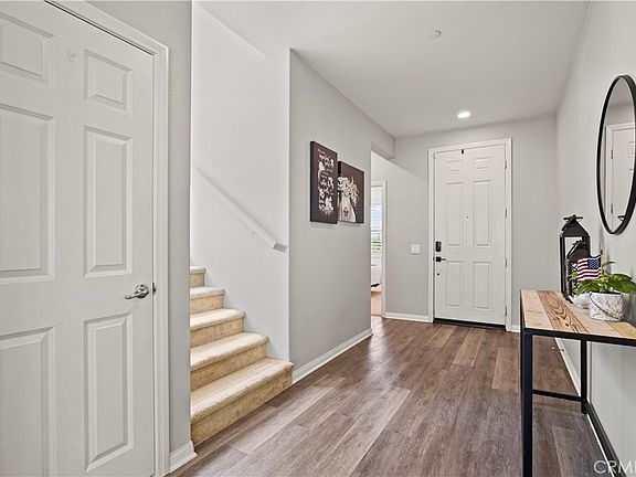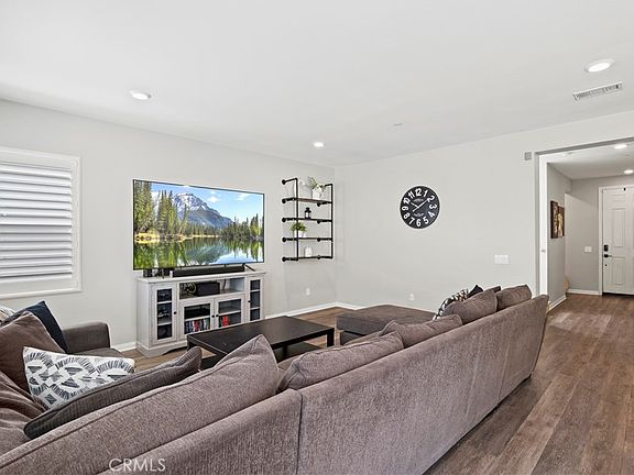 Beautifully upgraded Plum Canyon family home featuring fully PAID OFF Solar system, 4 bedrooms + 3 full bathrooms (1 bedroom & a full bath downstairs) PLUS a large Loft! Upon entering the gleaming wood-like flooring greets you and reveals the open-concept floor plan. The gorgeous kitchen features granite countertops with backsplash, a huge center stone island with an apron sink, a pantry, custom lighting fixtures, and Stainless Steel Appliances! Flowing seamlessly from here is the large family room and dining area that is ideal for family gatherings! Upstairs is the very spacious Loft and additional three bedrooms, plus a separate laundry room with a utility sink and extra storage racks. The Primary Bedroom is very generously sized, with an en-suite bathroom featuring a soaking tub, separate walk-in shower, cultured marble countertops with dual under-mounted sinks, and a very good-sized walk-in closet! The pool-sized backyard is quite spacious with plenty of room to play & perfect for entertaining! Additional features include Dual-Pane windows throughout, Full Copper Plumbing, Tankless water heater, Nest brand WiFi thermostats, 3-inch real wood Plantation Shutters, 6-panel doors, multiple ceiling fans & much more! Given this home is only 7 years old, there are also still approximately three more years on the Home Builder's warranty! Excellent H.O.A. amenities which include a resort-style recreation area with a sparkling swimming pool, hot tub, kids wading pool, BBQ area, and plenty of space for fun and games! Walking distance to excellent dining & shopping experiences such as Starbucks, S&S Donuts, Piccola Osteria, Tellys, D&D Fire Art, and easy 14 freeway access! Also in close proximity to award-winning area schools! Very reasonable H.O.A. dues & NO MELLO ROOS!!!