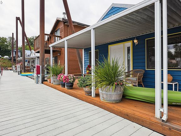Welcome to your riverfront retreat at Big Eddy Marina, one of the premier floating home communities on the Columbia River. This charming bungalow-style combo home combines timeless cabin character with the magic of living right on the water, and it’s priced to sell, offering one of the most affordable price points in a premier moorage. Wrapped in durable blue metal siding and topped with a matching metal roof, this home was built for longevity on the river. Step inside to find warm wood ceilings, accent walls, and a kitchen with a cozy cabin feel, the perfect blend of rustic and refined. Down the right-hand side, you’ll find the private boatwell, easily accommodating a 15’ boat, kayaks, or jet skis, making water adventures just a step away. To the left, a full bathroom and laundry space offer everyday convenience. Head upstairs to the loft bedroom overlooking the boatwell, where a skylight floods the space with natural light, a peaceful place to wake up each morning. Outside, enjoy well-maintained wood decking leading to your rooftop deck with sweeping views of the Columbia River. It’s the ideal spot for sunset cocktails, stargazing, or simply soaking in the tranquility of life on the water. Big Eddy Marina is under new ownership and is one of the most professionally well kept moorages on the river. Enjoy the private boat launch, gated entrance, and boat/RV parking availability, all part of a community focused on safety, convenience, and lifestyle. This is more than a home, it’s a rare chance to enjoy floating life in a highly sought-after community at an unbeatable price.