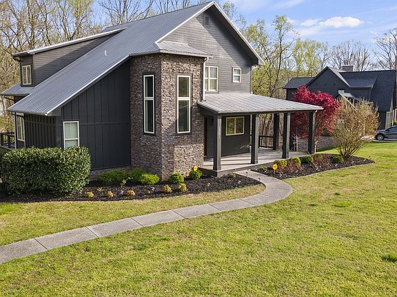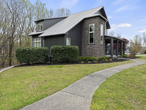 Contemporary Lake Home in Tims Ford Lake's only Master Planned Community with Resort Amenities. Easy access to #24 Boat Slip w/lift in Moonlight dock. Enjoy all community amenities including Clubhouse and Pool. Designer features, Carrara marble, slate, quartz and soapstone countertops, double sided stacked stone fireplace, screened porch off dining room, expansive decks, gas fire pit and gas grill. 5 Bedrooms, 3.5 Baths, beautifully finished basement living quarters with separate entrance. Sells furnished, golf cart included.