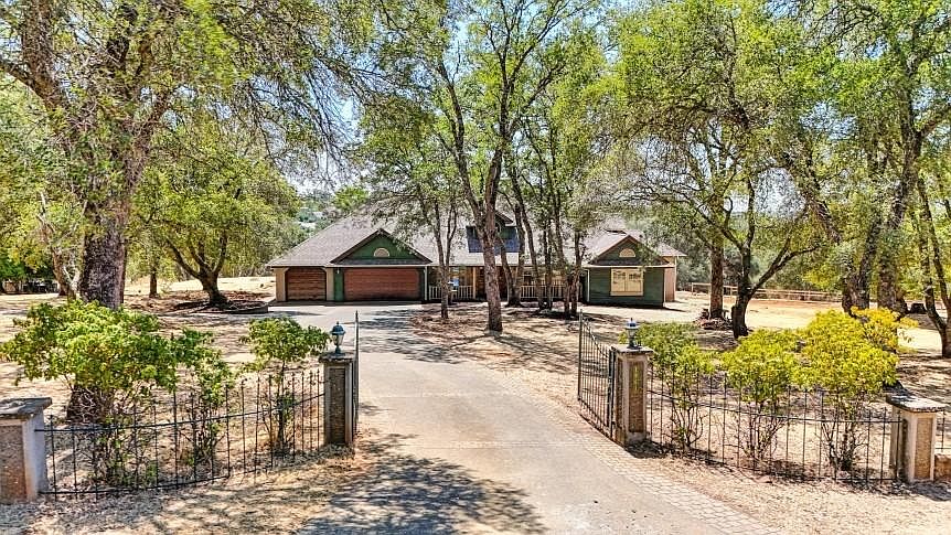 4 bedroom 3 bath Tudor custom home in desirable Green Springs neighborhood on level 5.35ac parcel w/oak trees within gated community. Property has Folsom Lake views and backs to Serrano Golf Community, built in pool and spa, 3car gar plus dream shop 1500sf w/800sf loft has separate entrance. Interior home has room & media room with remote guest qtrs. Room for multiple cars with attached 3 car garage and detached 4 car garage.