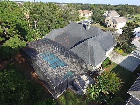 This stunning 4 3 2 lakefront pool home is one of the few homes in the Country Club of Mount Dora that has breathtaking lakefront views from all but three rooms. Sunsets year round over Lake Loch Leven are incredible. This spacious family home has a 3 way split bedroom plan plus an office, formal living room, casual family room and game media room with a fabulous wet bar that overlooks the pool. A built-in see through gas fireplace compliments the formal dining area Plantation shutters, crown molding throughout, beautiful hand chiseled Egyptian and Travetine Stone floors accent the living areas and outside entrance. The gourmet kitchen is designed for entertaining with exquisite fixtures, granite counters, solid wood cabinets, double island-each with its own dishwasher and sink-and a dinette area for family time. From the kitchen, you pass through elegant French doors into the massive media room with its grand view of the screen enclosed pool lined with brick pavers, dock to the lake and gazebo, and beautiful Lake Loch Leven. To the south of the kitchen are two bedrooms, a bath, office and utility room. To the north is the master wing that looks over the pool and the lake through elegant French doors as well. The house sits on an oversized lot and a half-nearly an acre-and is on the sandy end of the lake. Originally built by a German to last, most of the interior and the exterior walls are poured concrete. A circular front drive and side entry garage complete this fabulous home.