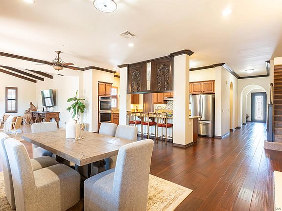Bar-none the BEST value in Fallbrook. Summer BLOWOUT sale. Seller says sell NOW! In the sought-after gated community of Shady Grove in Fallbrook, this luxurious 4-bedroom, 3.5-bathroom home offers single-story living with a unique European-style flair and timeless charm. The open-concept layout features a spacious family room with vaulted ceilings, exposed wooden beams, a cozy fireplace, and sliding doors that lead to a tranquil outdoor patio. The chef’s kitchen is an entertainer’s dream, complete with stainless steel appliances, a double oven, granite countertops, a large island with bar seating, walk-in pantry, and seamless flow into the dining and sitting areas with patio access. The main-level primary ensuite includes dual sink vanity, soaking tub, walk-in shower, and walk-in closet, while the upstairs secondary ensuite offers incredible flexibility as a guest suite, recreation room, studio, office or additional living space—perfect for multi-generational living. The laundry room is thoughtfully equipped with abundant cabinetry, a countertop, and utility sink. Step outside to a peaceful, low-maintenance oasis featuring raised garden beds, fruit trees, lush landscaping, a beautiful fountain, and stunning views of the neighboring nature preserve. Shady Grove residents enjoy private gated access, scenic walking trails, parks, a charming bridge, tennis and pickleball courts, basketball courts, and RV parking. Come see this one-of-a-kind retreat in one of Fallbrook’s most cherished communities!null