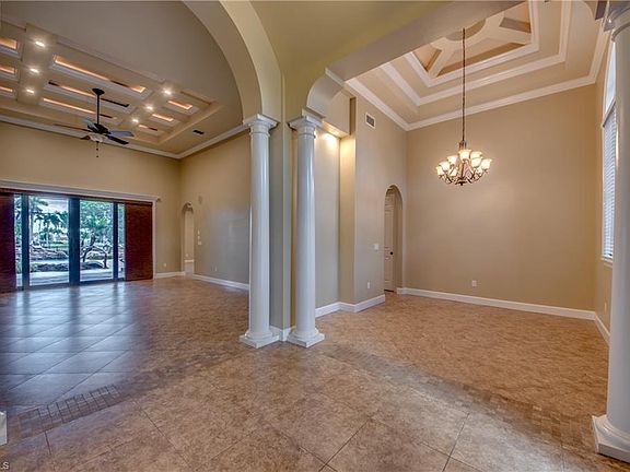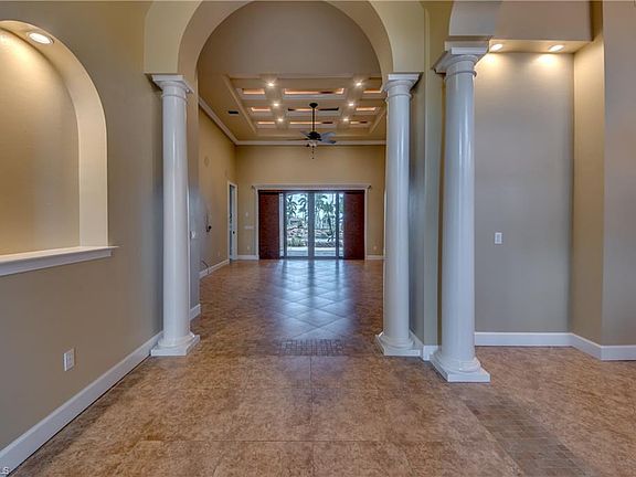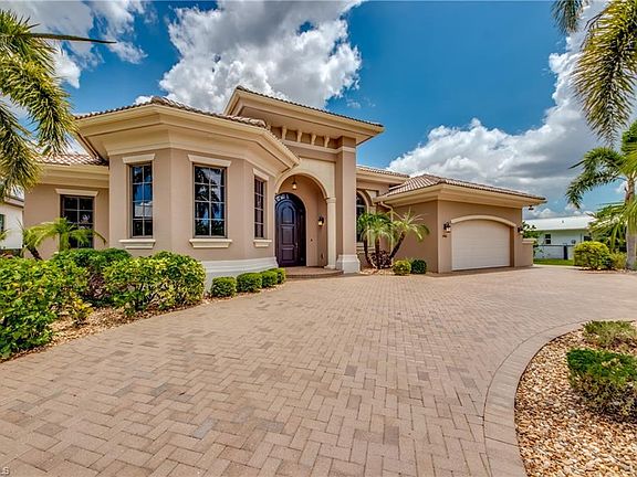 This STUNNING direct access home is a MUST SEE! Located in the highly coveted neighborhood of Savona. This home boasts exceptional craftsmanship throughout. Including led lighted coffered ceilings, detailed tile work, woodwork in the home office/den and slate throughout the master bathroom. 3 large bedrooms, 3 bathrooms(pool bath included) living room, family room and a den/home office. Kitchen includes hardwood cabinets, beautiful granite countertops and stainless steel appliances. You will immediately be drawn to the oversized patio area with a breathtaking salt water pool/hot tub, waterfall, kiddie pool and koi pond. In addition, the yard is free from the hassle of grass and covered entirely in rock and pavers . The dock area is covered with composite with space for a large boat and has amazing views of the Caloosahatchee! This home is definitely one of a kind!