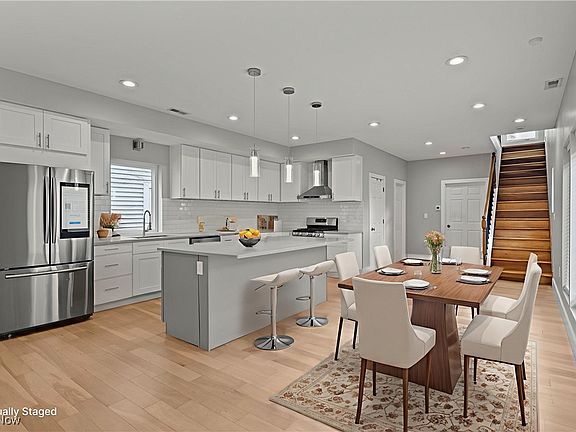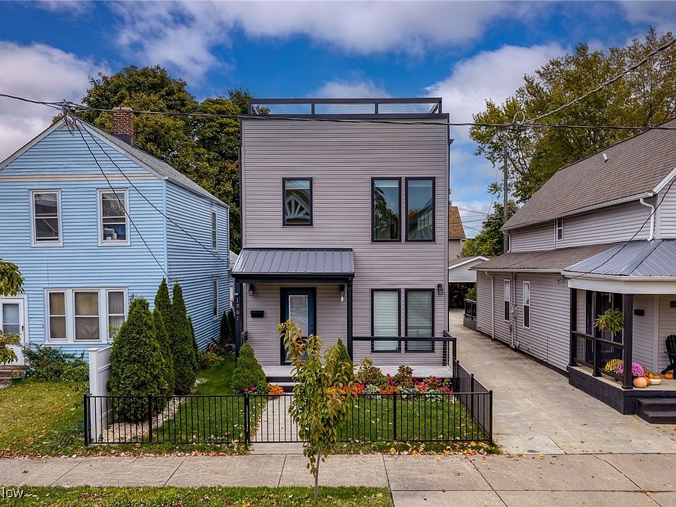 Experience modern luxury and city living at its finest in this stunning 3-bedroom, 3-bath home perfectly situated in the heart of Ohio City, one of Cleveland’s most vibrant neighborhoods. From the moment you arrive, the home’s refreshed landscaping, sleek curb appeal, and updated fencing set the tone for what’s inside. Step through the front door into a space that blends modern sophistication with everyday comfort. The open-concept main floor is filled with natural light and features a stylish living area, dining space, and a chef-inspired kitchen adorned with stainless steel appliances, a built-in microwave, beverage fridge, and striking white-and-gray shaker cabinetry. Thoughtful upgrades throughout the home include designer lighting, premium blinds and shades, statement mirrors, and modern ceiling fans—every detail designed for form and function. Upstairs, retreat to the primary suite oasis, complete with a spa-like bath and spacious walk-in closet. Two additional bedrooms, a full bath, and a convenient laundry room offer both comfort and practicality. But the real showstopper awaits on the third floor—an entertainer’s dream featuring a custom wet bar with floating shelves, granite countertops, an ice maker, sink with glass cleaner, and a wine fridge. Expansive windows and door open up to a massive rooftop deck, creating an effortless indoor-outdoor flow perfect for lounging, dining, or hosting under the city skyline. There’s even room for an outdoor shower, box for an outdoor TV, and workout space or serene retreat. A two-car garage and a charming backyard with space for gardening or relaxing outdoors round out this incredible property. Here, you’ll experience the perfect mix of historic charm and modern energy, surrounded by local coffee shops, acclaimed restaurants, breweries, and the iconic West Side Market—all just steps away. Live bold. Live stylish. Live Ohio City. Schedule your private tour today.