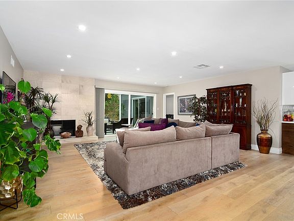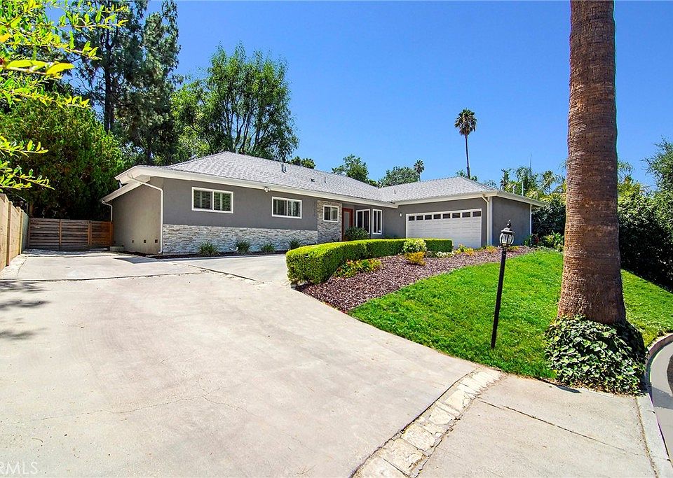 Gorgeous contemporary “South of Blvd” showplace nestled within the tranquility of Tarzana. This stellar single level is situated on a desirable quiet cul-de-sac. Five Bedrooms offering two primary suites! Newer roof, fresh paint & distinct stack-stone accents create instant attraction. Large concrete drive affords room for several cars, possible R.V., boat or other toys. Inside this light & bright stunner, discover gorgeous wide-plank oak flooring & newer doors & windows allowing natural light to bathe. Smooth ceilings & recessed lighting further enhance. Spacious Living room features a distinct fireplace. Dazzling dream kitchen affords beautiful quartz counters, large center-island, custom cabinetry & stainless-steel appliances Choose from one of the two primary suites each offering spacious walk-in closets & spectacular baths. Additional enhancements include upgraded plumbing, newer attic insulation, newer 200-amp panel & seamless gutters. Outside, towering trees, lush foliage & expansive grounds award you with an ultra-serene environment. Great schools too….Don’t miss!