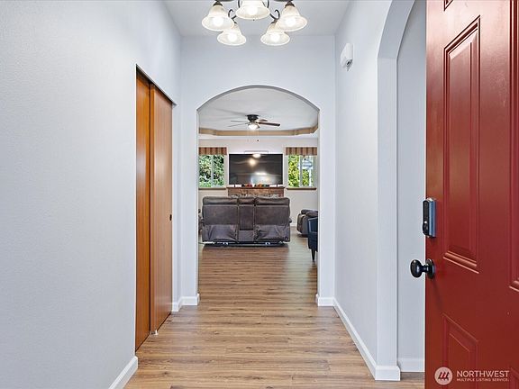 This Charming 1 story home is tucked away in a 9 home community in Bonney Lake! NEW Exterior Paint, NEW LVP flooring, Refreshed bathrooms, Generator-Ready, and an inviting layout give this home a warm, contemporary feel! You'll love the open concept living, dining, and kitchen with 9' ceilings. Enjoy Newer S.S. appliances, gas range, and a large island to gather around. This move-in-ready home combines comfort and functionality, perfect for first time buyers or those seeking single-level living. Near highly sought-after schools, access to shopping, dining, and outdoor recreation, this property is ideal for enjoying the Pacific Northwest lifestyle. Don’t miss this opportunity for a beautifully updated home in a prime location! Don't miss it!