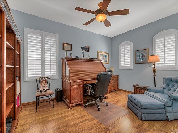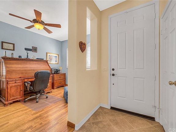 Beautiful single story Chelsea located a treelined cul-de-sac. This home boasts open floor plan concept, 3 bedrooms, 2 full bathrooms, plus a den, cozy fireplace, high ceilings, recessed lighting, upgraded tile and wood like floors, surround sound speakers, ceiling fans, reverse osmosis water purifier, plantation shutters, neutral decor, retractable screen doors, indoor laundry room, and shows light and bright throughout. The gorgeous kitchen has been upgraded with custom soft close cabinetry, stainless steel appliances, granite counters, and huge center island w/ breakfast bar. The large master bedroom has en suite private bathroom that includes walk in shower, separate tub, dual sinks, and walk in closet w/ custom organization. Outside enjoy your oversized yard with wrap around covered patio, built in BBQ, above ground spa, large grass area, fruit trees, and lush landscape. Garage has epoxy flooring, newer water heater, cabinetry, and over head storage. Community offers park, pool & spa, award winning schools, and is close to shopping & restaurants.