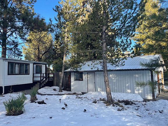 Great opportunity to own your home or investment property in SW Bend! Add an ADU or use as a rental property. Rental income was $26,400 in 2023. This home also shows available on the City maps for Short Term Rental! Nestled among tall pine trees, on a large, .32-acre lot at the end of cul-de-sac. 1008 SF home, 2 bedrooms each with private entry full baths and a den/sitting area. Included is the 700 SF garage/workshop,120 SF potting shed, fully fenced yard, dog run, RV parking with space to add an ADU. Completely updated with new interior paint throughout, new entry front door with keyless entry, interior doors, LVP flooring, roof, electrical plugs and switches, LED ceiling lights, vanity and fixtures. Brand new ENERGY STAR certified refrigerator with built-in ice maker. New pellet stove adds an alternative heating source to the recently serviced HVAC system. The oversized garage/workshop, 25' x 28' includes 220V electrical and 2 garage openers. New front entry TREX decking.
