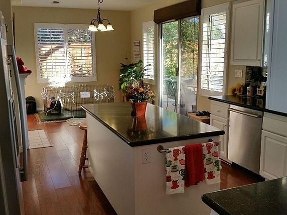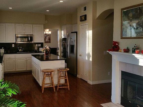 Beautiful Sunset Hills Estates 5 Bedroom 3 Bath home (one bedroom downstairs and a bathroom) with gorgeous pool/spa over looking the beautiful view of the city, covered patio with fans and located on a cul-de-dac. Granite kitchen counters, wood floors throughout, carpet in bedrooms, high ceilings, recessed lighting, fireplace in family room, Master bedroom has a veranda to enjoy the gorgeous view of the city and mountains especially at night. Low HOA and No Mello Roos!