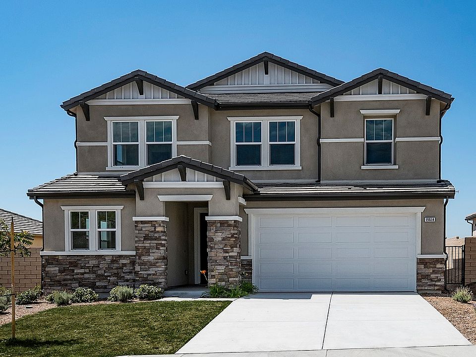 This elegant Italian-style home is located within the lovely hillside community of Canyon Heights at Plum Canyon Ranch. The spacious open concept floor plan features 9-ft. ceilings throughout, a covered patio, and a first-floor den that's perfect for an office. The bright and airy kitchen features gorgeous quartz countertops, Shaker-style cabinets in Java, an enlarged island, a double oven and stainless steel appliances. Upstairs, you'll find a generous loft that's ideal for a media center or game room. The master bedroom offers a large walk-in closet, and the master bath boasts a separate tub and shower with tile surround. Additional features of this ENERGY STAR® certified home include Traverse LED lighting, a tankless water heater, programmable thermostat and 10-year limited warranty. For further information, please visit the sales office on the corner of Lanfranca and La Madrid. Live in a great community with no Mello-Roos.