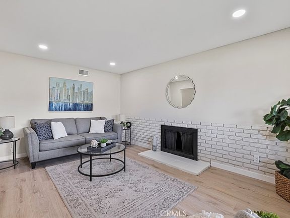 As you enter, you’re greeted by a bright and inviting living room to your right, complete with a charming white brick fireplace—perfect for cozy evenings at home. To your left, a separate dining area flows seamlessly into the kitchen, ideal for entertaining.