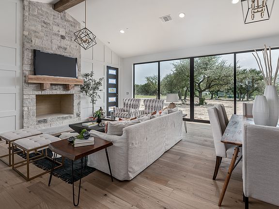 Gorgeous new modern farmhouse in sought-after Travis Settlement w/over-the-top attention to detail. Game room/office/4th bed/in laws quarters separated by breezeway, light+bright finish outs, wood beams, light oak flooring, comm. grade chef's kitchen, oversized wood burning fireplace, 13' island, mud room, 20'x9' contemp. sliding glass wall in main living & 16'x9' sliding glass wall in master overlooking hill country views. 2.4 acre level, oak filled lot. 2.5 car carriage gar. +100 sf of gar. storage.